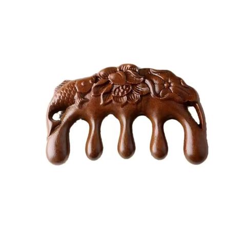 2025 नई उच्च गुणवत्ता वाली लकड़ी की मालिश कंघी छोटी ठोस लकड़ी मेरिडियन कमल मछली नक्काशीदार चौड़े दांत
